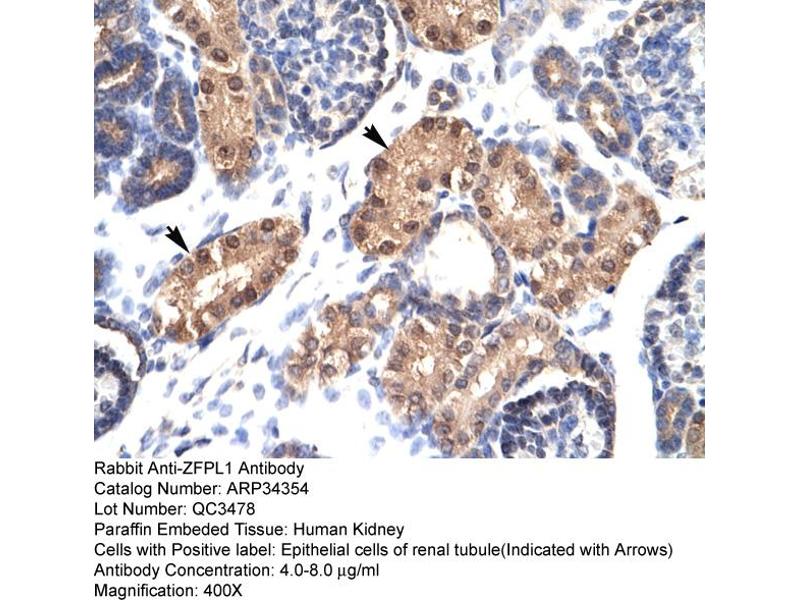 - This is a rabbit polyclonal antibody against ZFPL1. It was validated on Western Blot and immunohistochemistry.