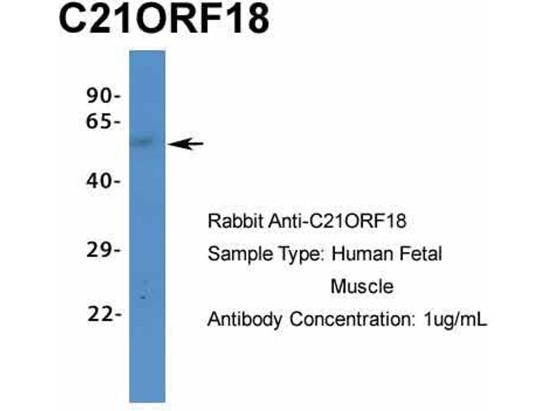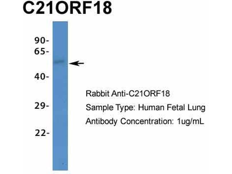 This is a rabbit polyclonal antibody against C21ORF18. It was validated on Western Blot using a cell lysate as a positive control.