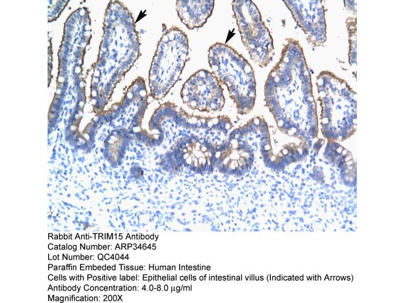 - This is a rabbit polyclonal antibody against TRIM15. It was validated on Western Blot and immunohistochemistry.