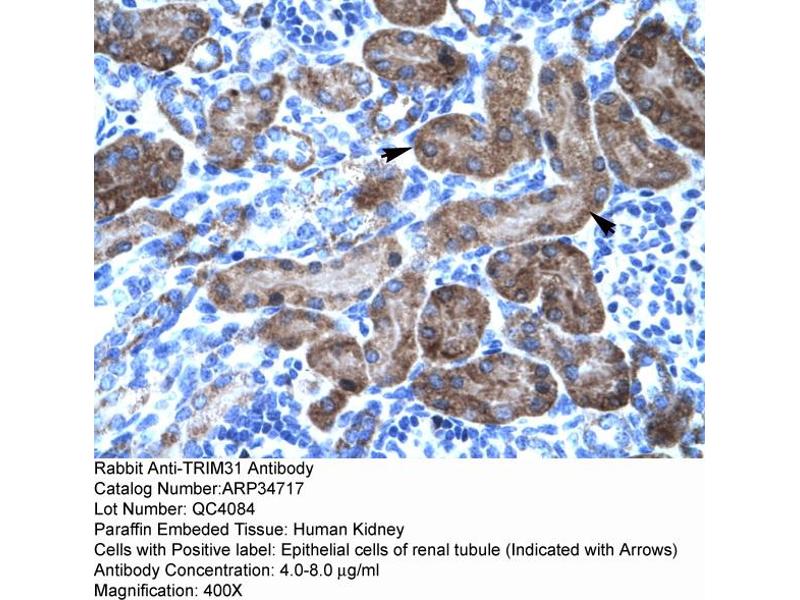- The immunogen is a synthetic peptide directed towards the N terminal region of human TRIM31