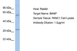 - The immunogen is a synthetic peptide directed towards the N-terminal region of human BANP