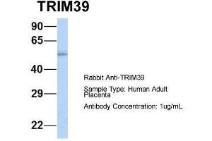 - This is a rabbit polyclonal antibody against TRIM39. It was validated on Western Blot using a cell lysate as a positive control.