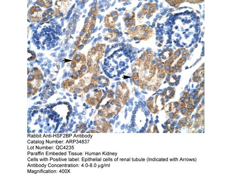 - This is a rabbit polyclonal antibody against HSF2BP. It was validated on Western Blot and immunohistochemistry.