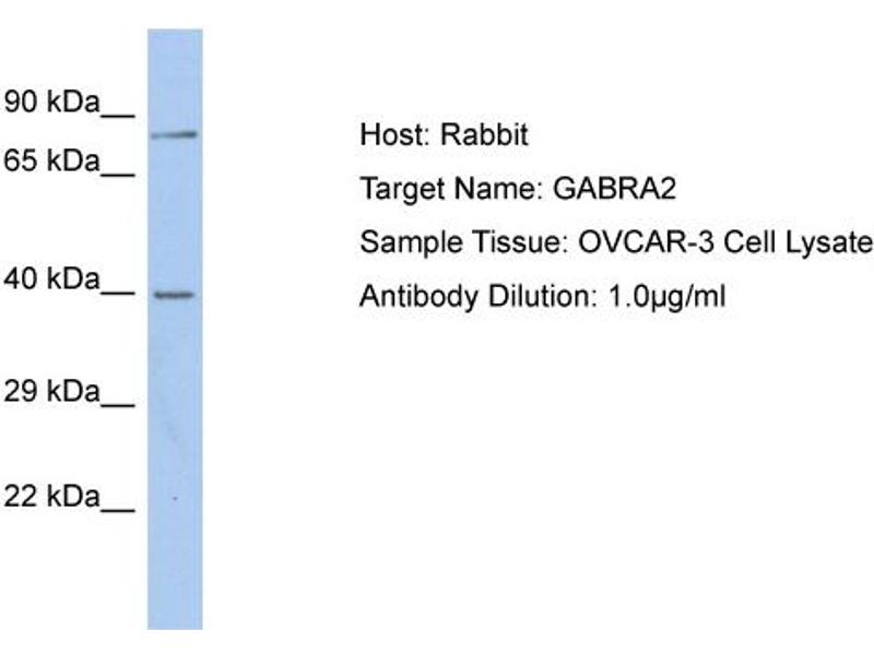 Der Kaninchen Polyklonal anti-GABRA2 Antikörper wird verwendet zum Nachweis von GABRA2 in Proben von Human, Ratte, Maus, Hund, Rind (Kuh), Pferd, Kaninchen, Meerschweinchen und Zebrafisch (Danio rerio). Er wurde validiert für WB.