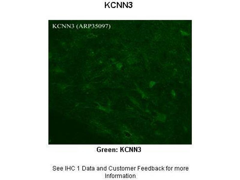 - The immunogen is a synthetic peptide directed towards the C terminal region of human KCNN3