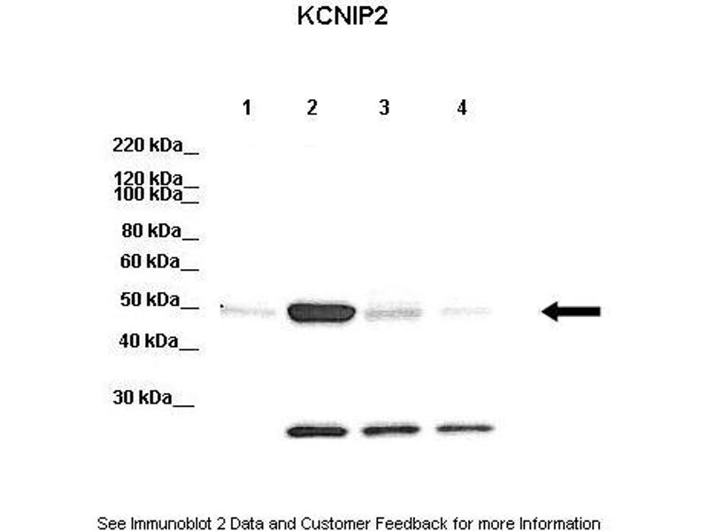 - The immunogen is a synthetic peptide directed towards the N terminal region of human KCNIP2