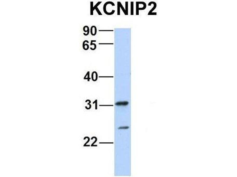 - This is a rabbit polyclonal antibody against KCNIP2. It was validated on Western Blot using a cell lysate as a positive control.
