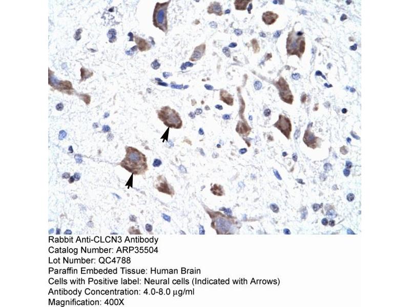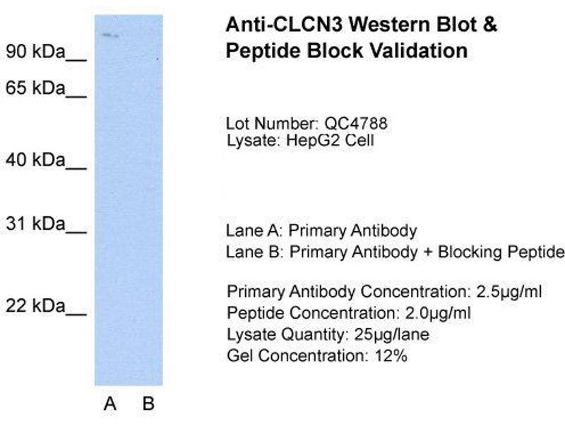 - The immunogen is a synthetic peptide directed towards the C-terminal region of human CLCN3