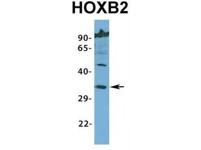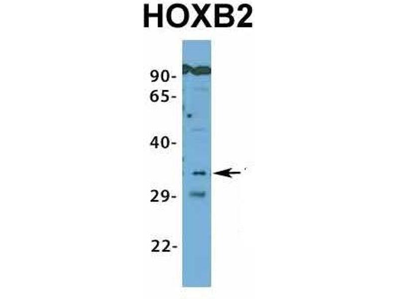- This is a rabbit polyclonal antibody against HOXB2. It was validated on Western Blot using a cell lysate as a positive control.