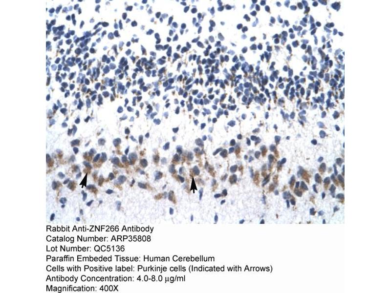 - This is a rabbit polyclonal antibody against ZNF266. It was validated on Western Blot and immunohistochemistry.