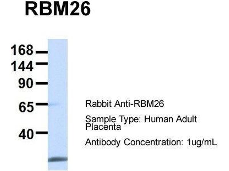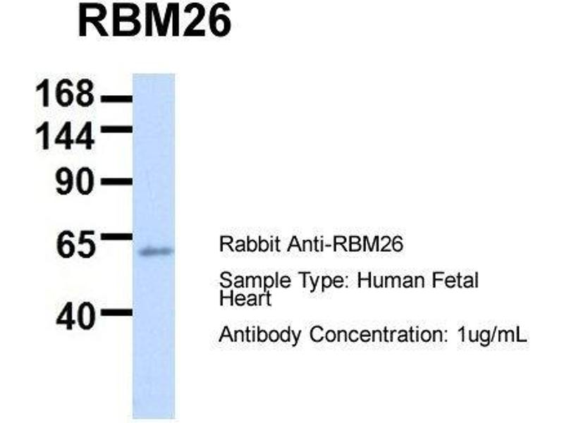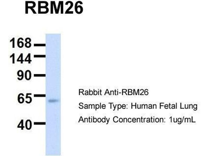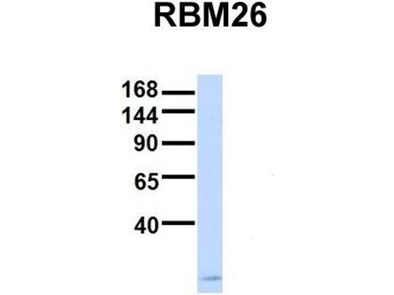 - This is a rabbit polyclonal antibody against RBM26. It was validated on Western Blot using a cell lysate as a positive control.