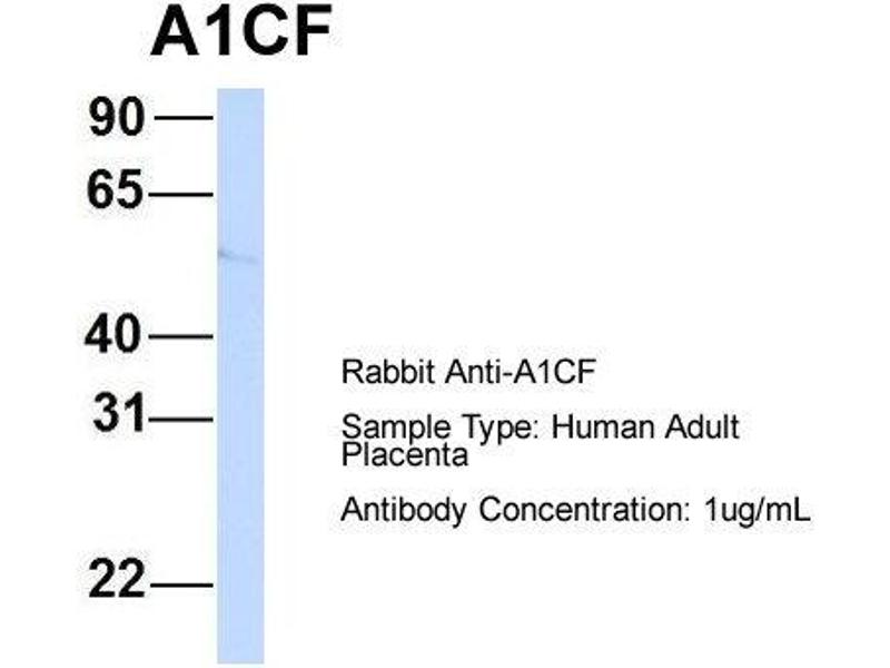 - This is a rabbit polyclonal antibody against A1CF. It was validated on Western Blot using a cell lysate as a positive control.