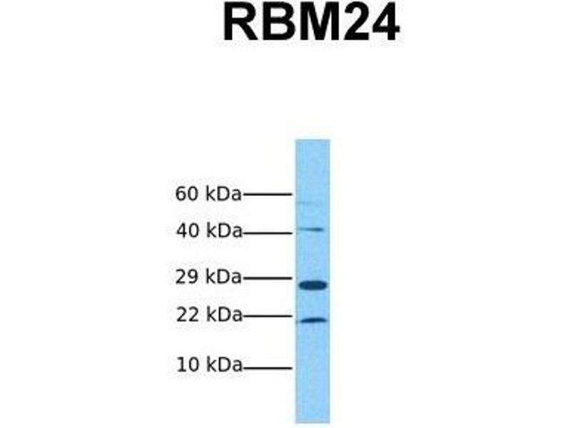 - This is a rabbit polyclonal antibody against RBM24. It was validated on Western Blot using a cell lysate as a positive control.