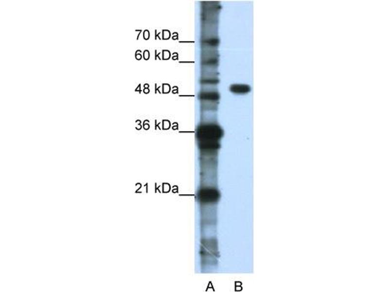 - The immunogen is a synthetic peptide directed towards the N terminal region of human DDX47