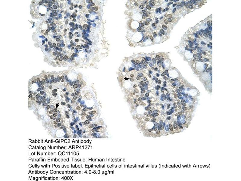 - The immunogen is a synthetic peptide directed towards the N terminal region of human GIPC2