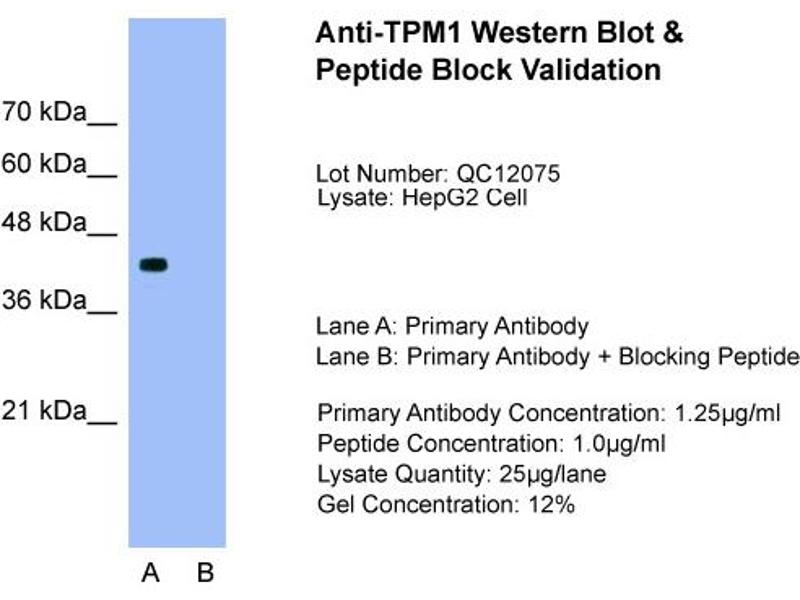 - The immunogen is a synthetic peptide directed towards the N terminal region of human TPM1