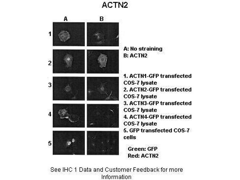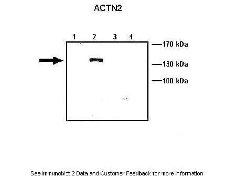 - The immunogen is a synthetic peptide directed towards the N terminal region of human ACTN2