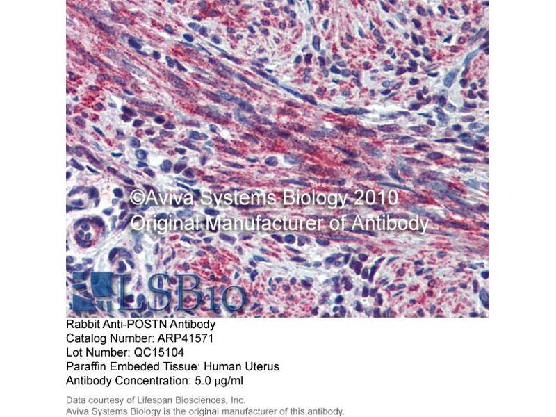 - The immunogen is a synthetic peptide directed towards the middle region of human POSTN