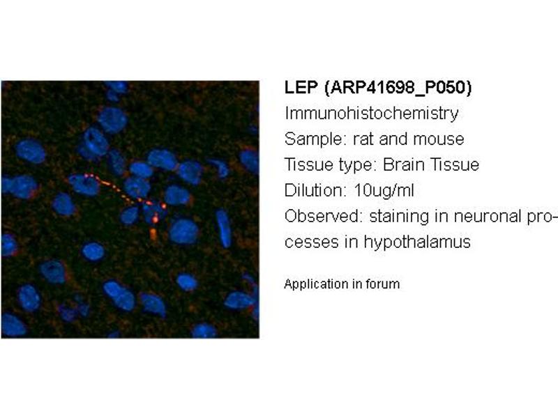 - The immunogen is a synthetic peptide directed towards the middle region of human LEP