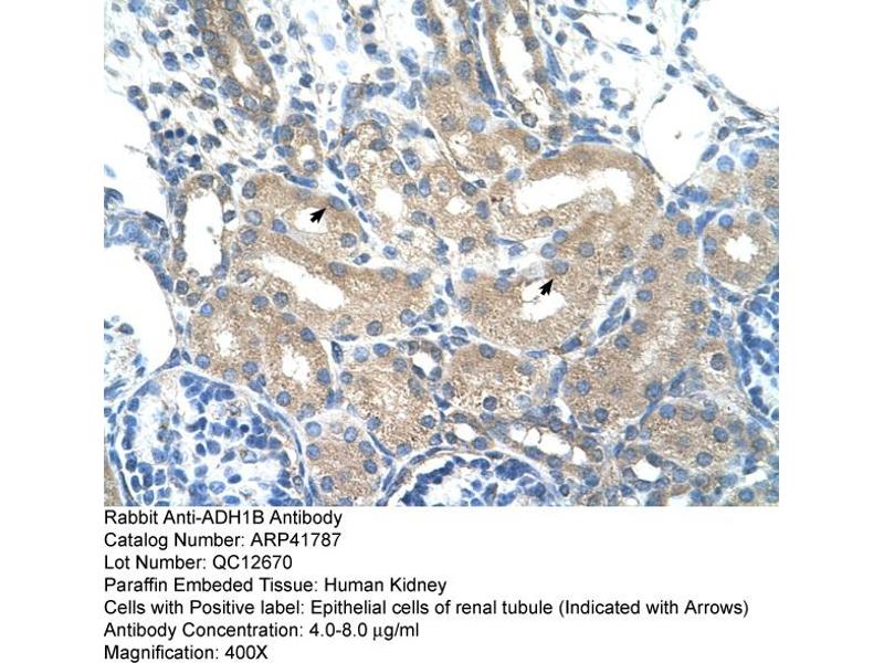 - This is a rabbit polyclonal antibody against ADH1B. It was validated on Western Blot and immunohistochemistry.