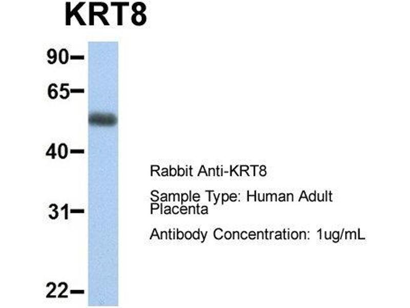 - This is a rabbit polyclonal antibody against KRT8. It was validated on Western Blot using a cell lysate as a positive control.