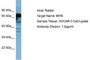 This is a rabbit polyclonal antibody against MYB. It was validated on Western Blot.