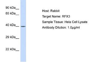 This gene is a member of the regulatory factor X gene family, which encodes transcription factors that contain a highly-conserved winged helix DNA binding domain. The protein encoded by this gene is structurally related to regulatory factors X1, X2, X4, and X5. It is a transcriptional activator that can bind DNA as a monomer or as a heterodimer with other RFX family members. Multiple transcript variants encoding different isoforms have been described for this gene. Protein Interaction Partner: TRIP6, FHL3, FHL2, SOX2, PKNOX1, IRF6, EWSR1, CREB1, BIN1, RFX6, RFX4, TRAF2, RFX3, RFX1, Protein Size: 413