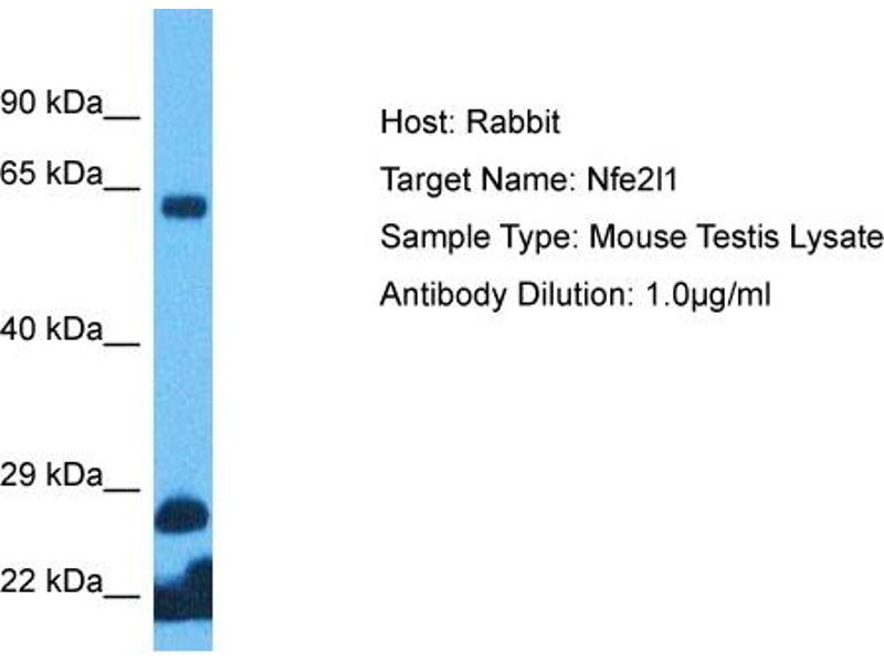 This is a rabbit polyclonal antibody against Nfe2l1. It was validated on Western Blot.