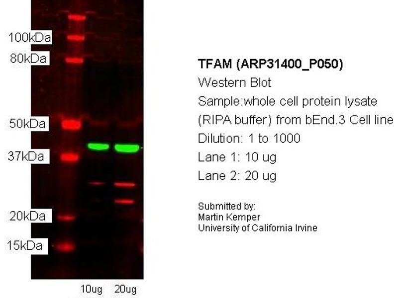 - The immunogen is a synthetic peptide directed towards the N terminal region of human TFAM