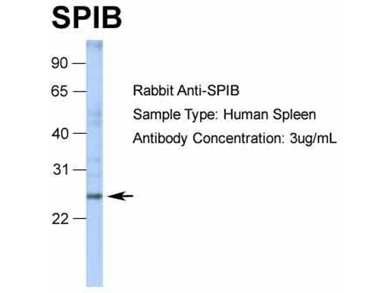 - This is a rabbit polyclonal antibody against SPIB. It was validated on Western Blot using a cell lysate as a positive control.