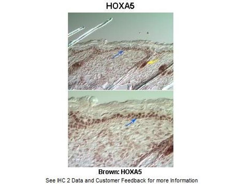- The immunogen is a synthetic peptide directed towards the middle region of human HOXA5