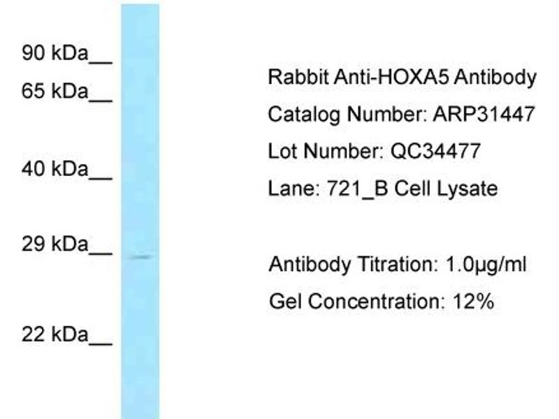 - This is a rabbit polyclonal antibody against HOXA5. It was validated on Western Blot.