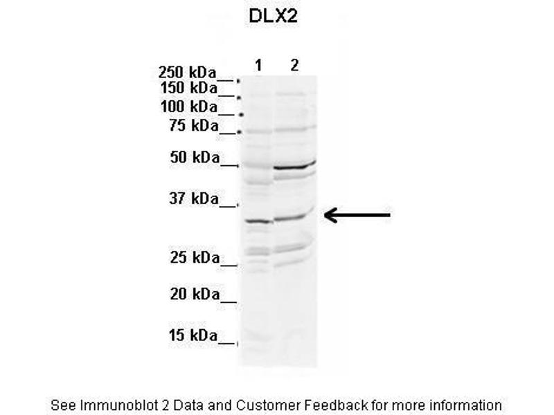 This is a rabbit polyclonal antibody against DLX2. It was validated on Western Blot and immunohistochemistry.