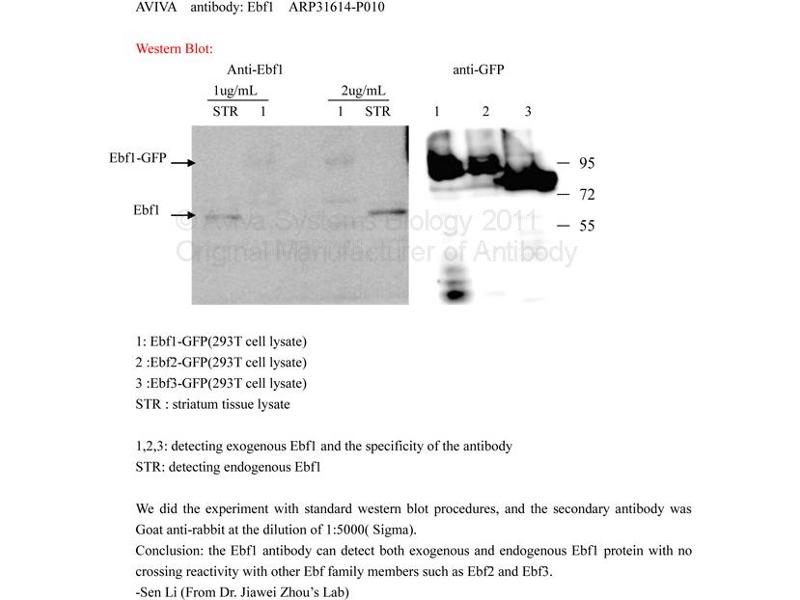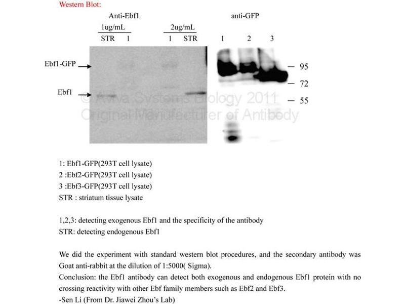 - This is a rabbit polyclonal antibody against EBF1. It was validated on Western Blot using a cell lysate as a positive control.