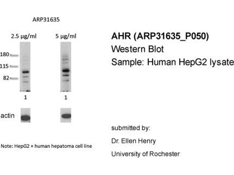 - This is a rabbit polyclonal antibody against AHR. It was validated on Western Blot using a cell lysate as a positive control.