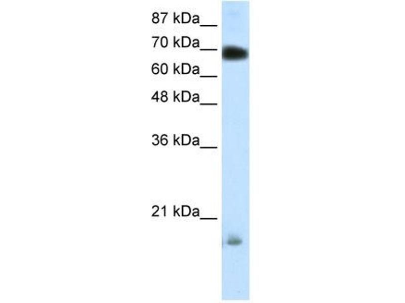 TRIM32 is a member of the tripartite motif (TRIM) family. The TRIM motif includes three zinc-binding domains, a RING, a B-box type 1 and a B-box type 2, and a coiled-coil region. TRIM32 localizes to cytoplasmic bodies. The protein has also been localized to the nucleus, where it interacts with the activation domain of the HIV-1 Tat protein. The Tat protein activates transcription of HIV-1 genes.The protein encoded by this gene is a member of the tripartite motif (TRIM) family. The TRIM motif includes three zinc-binding domains, a RING, a B-box type 1 and a B-box type 2, and a coiled-coil region. The protein localizes to cytoplasmic bodies. The protein has also been localized to the nucleus, where it interacts with the activation domain of the HIV-1 Tat protein. The Tat protein activates transcription of HIV-1 genes.The protein encoded by this gene is a member of the tripartite motif (TRIM) family. The TRIM motif includes three zinc-binding domains, a RING, a B-box type 1 and a B-box type 2, and a coiled-coil region. The protein localizes to cytoplasmic bodies. The protein has also been localized to the nucleus, where it interacts with the activation domain of the HIV-1 Tat protein. The Tat protein activates transcription of HIV-1 genes.