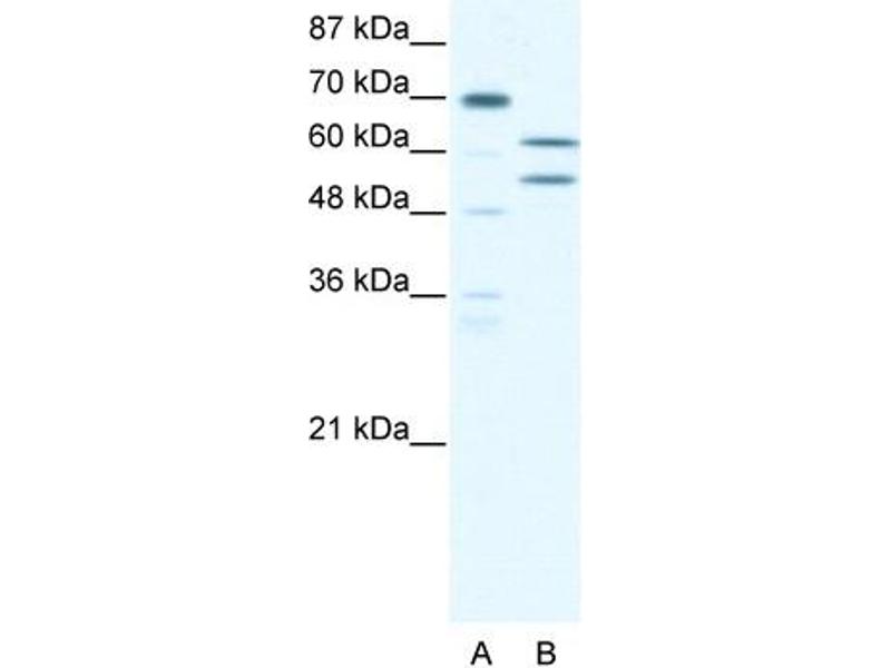 - The immunogen is a synthetic peptide directed towards the N terminal region of human ZNF297B
