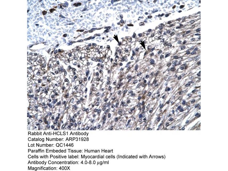 - The immunogen is a synthetic peptide directed towards the N terminal region of human HCLS1