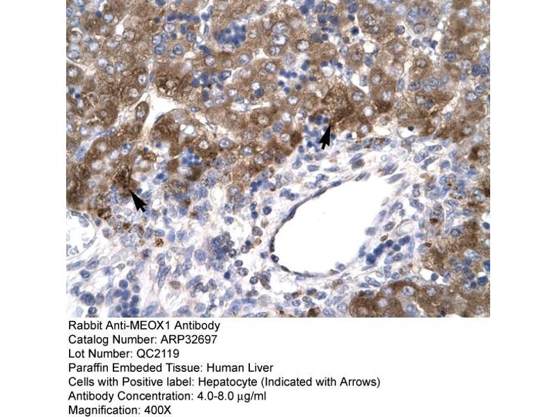 - This is a rabbit polyclonal antibody against MEOX1. It was validated on Western Blot and immunohistochemistry.