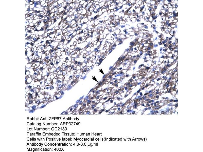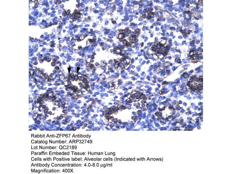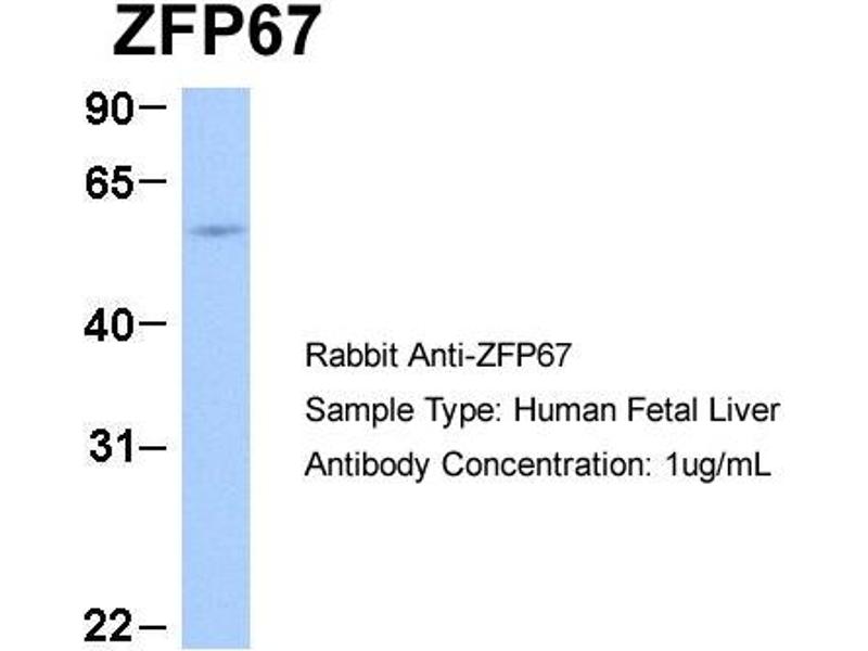 - This is a rabbit polyclonal antibody against ZFP67. It was validated on Western Blot and immunohistochemistry.