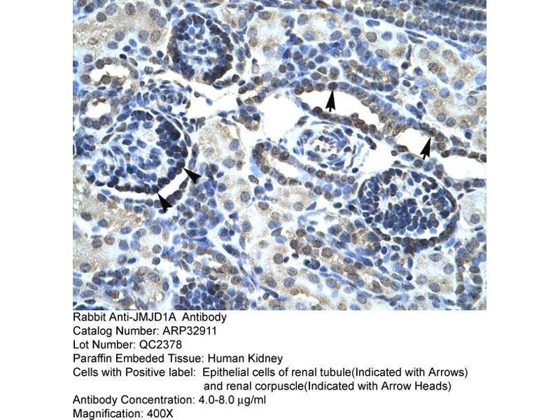 This is a rabbit polyclonal antibody against JMJD1A. It was validated on Western Blot and immunohistochemistry.