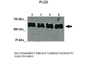 - This is a rabbit polyclonal antibody against PLD2. It was validated on Western Blot using a cell lysate as a positive control.