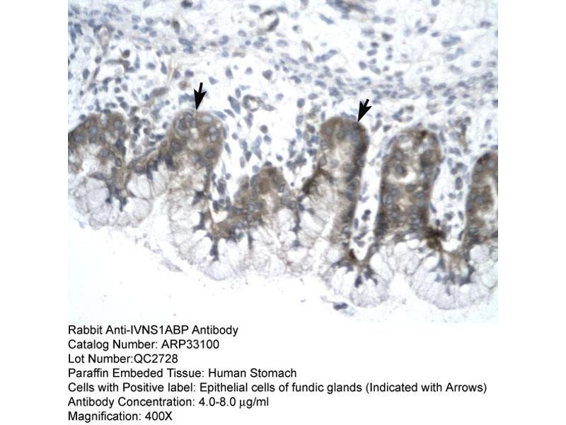 - This is a rabbit polyclonal antibody against IVNS1ABP. It was validated on Western Blot and immunohistochemistry.