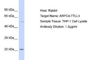 This gene encodes one of seven subunits of the human Arp2/3 protein complex. This complex controls actin polymerization in cells and has been conserved throughout eukaryotic evolution. This gene encodes the p20 subunit, which is necessary for actin nucleation and high-affinity binding to F-actin. Alternative splicing results in multiple transcript variants. Naturally occurring read-through transcription exists between this gene and the downstream tubulin tyrosine ligase-like family, member 3 (TTLL3), which results in the production of a fusion protein. Alias Symbols: ARC20, P20-ARC Protein Size: 167