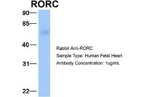 - This is a rabbit polyclonal antibody against RORC. It was validated on Western Blot using a cell lysate as a positive control.
