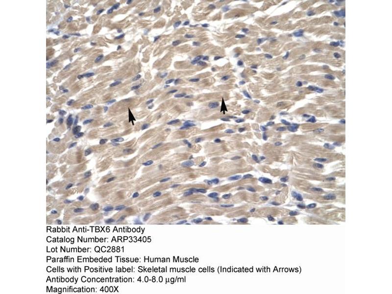 - This is a rabbit polyclonal antibody against TBX6. It was validated on Western Blot and immunohistochemistry.