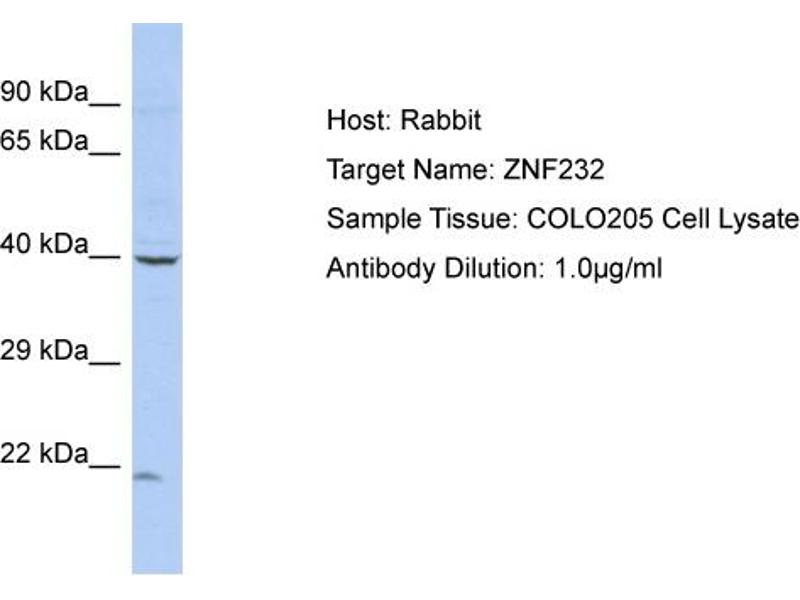 This is a rabbit polyclonal antibody against ZNF232. It was validated on Western Blot.