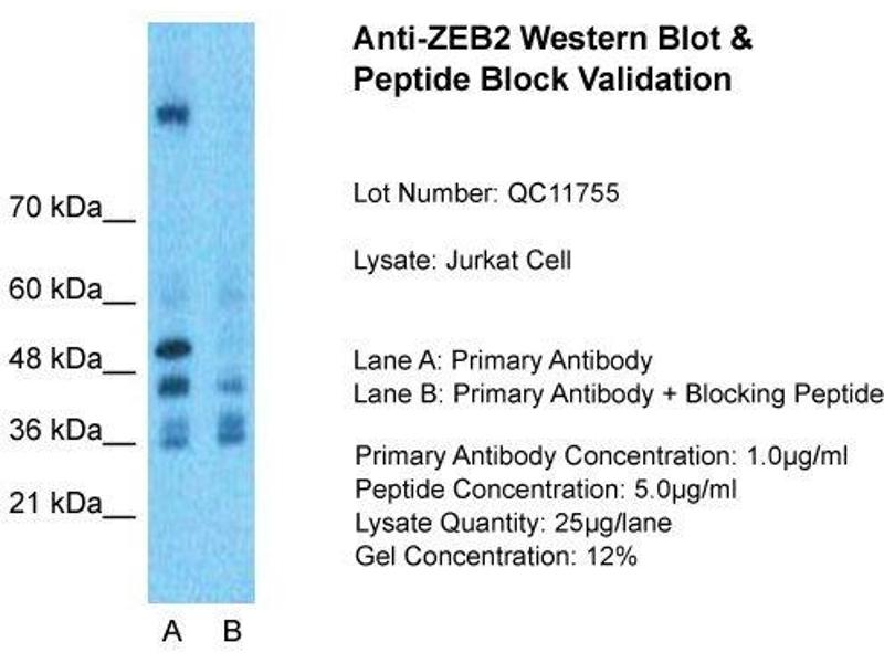 - This is a rabbit polyclonal antibody against ZEB2. It was validated on Western Blot using a cell lysate as a positive control.