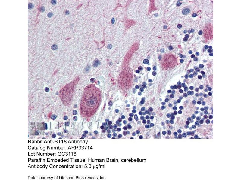 - The immunogen is a synthetic peptide directed towards the middle region of human ST18