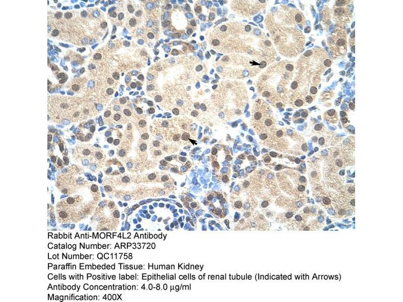 - This is a rabbit polyclonal antibody against MORF4L2. It was validated on Western Blot and immunohistochemistry.
